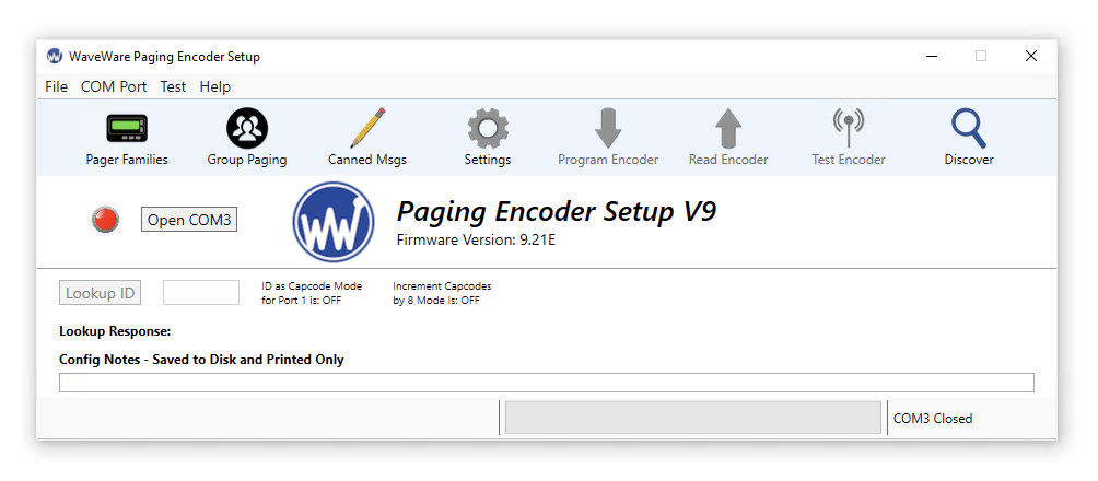 The WaveWare Paging Encoder Setup Software allows you to configure and test your WaveWare paging system, as well as perform range testing.